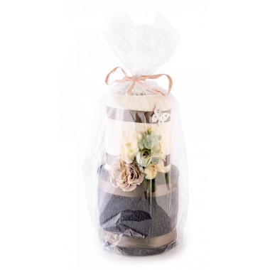 Tort trzypiętrowy składa się z ręczników : 1x30x50 , 1x50x90 , 1x70x140.