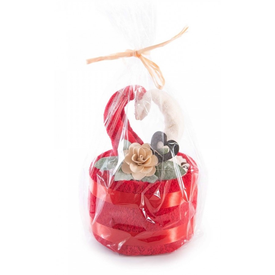Piękny tort na którym jest umieszczone serduszko. Tort składa się z dwóch ręczników kąpielowych :