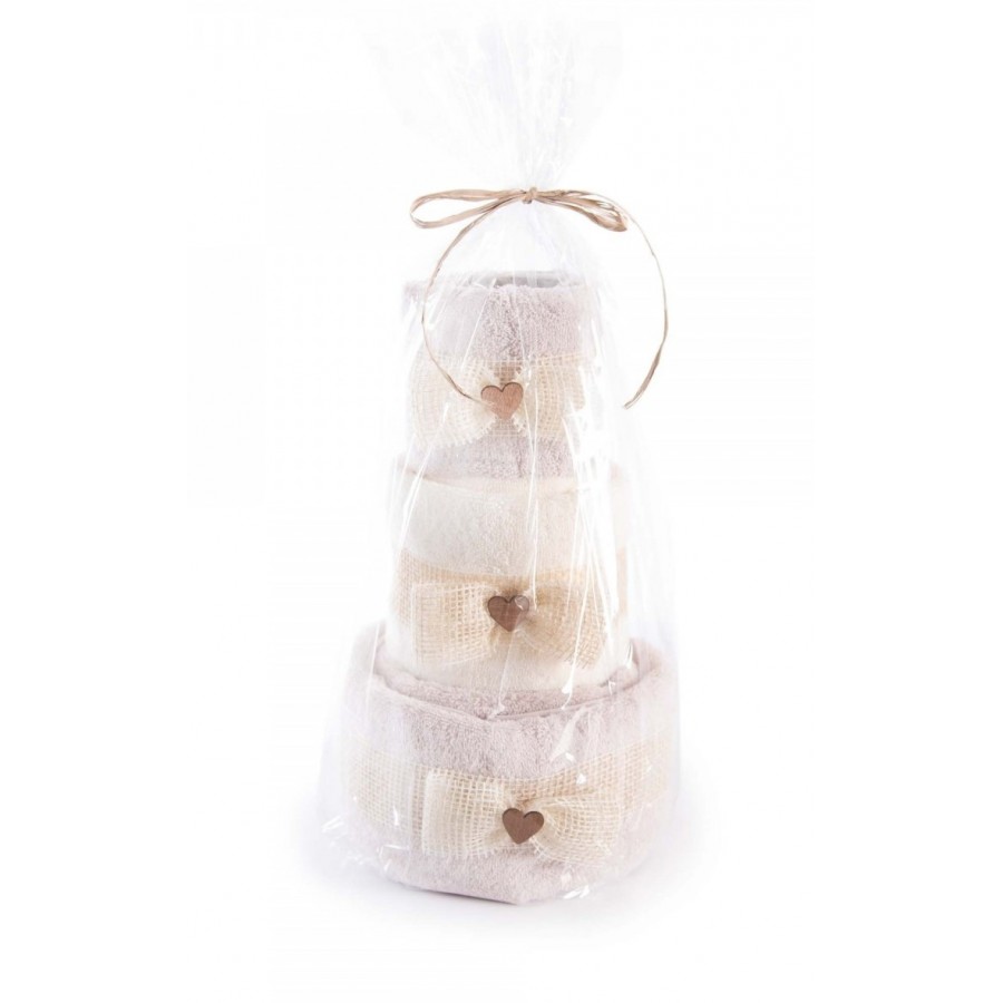 Tort trzypiętrowy składa się z ręczników : 1x30x50 , 1x50x90 , 1x70x140.