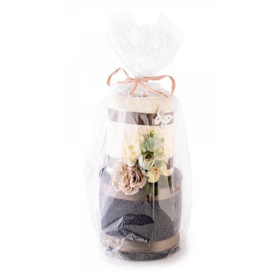 Wspaniały prezent w kształcie tortu który składa się z dwóch ręczników :